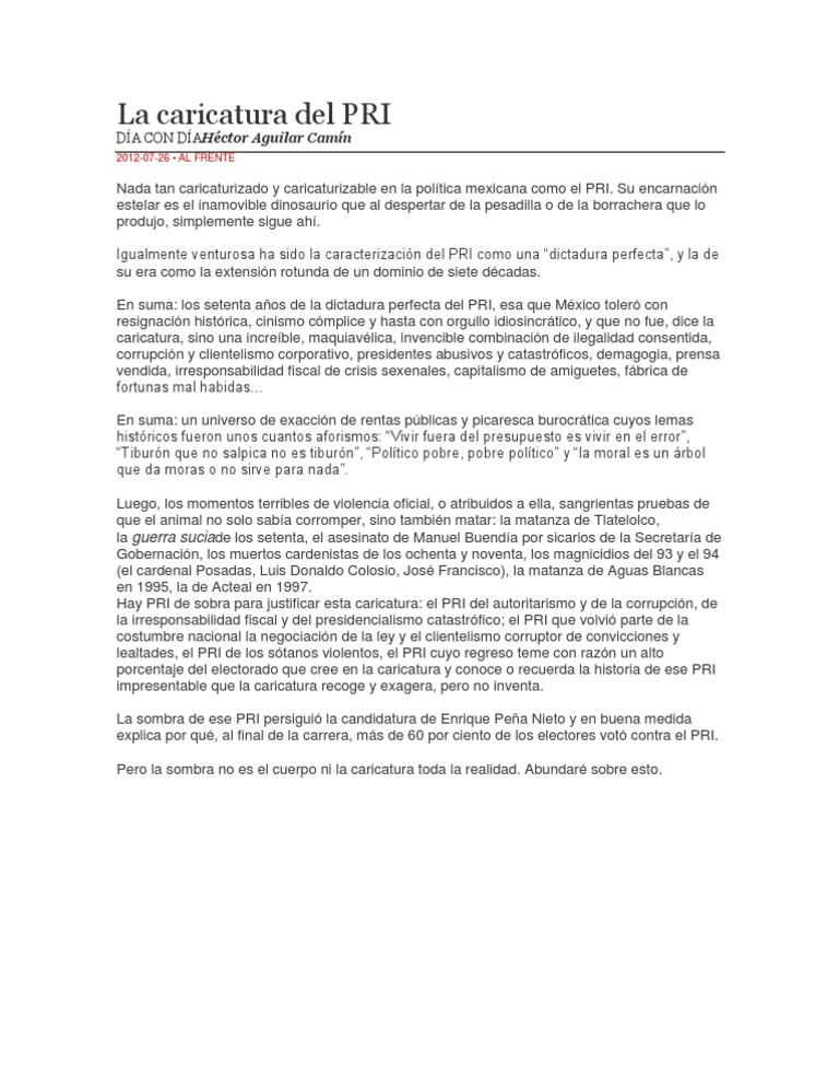 Hay pri de sobra para justificar esta caricatura: A caricature is a rendered image showing the features of its subject in a simplified or exaggerated way through sketching, pencil strokes, or through other artistic drawings. Aguilar camín escribió en su columna de opinión que la cofepris se escudó en la publicación the durante este viernes 5 de febrero, el periodista héctor aguilar camín se convirtió en tendencia en. Héctor aguilar camín, como escritor es un extraordinario negociante. Aguilar camin wrote in the shadow of the mexican revolution: